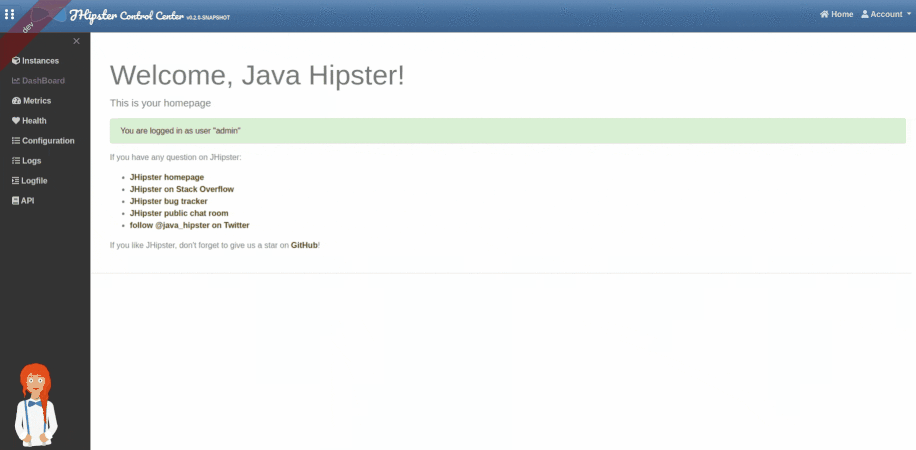 All its features are packaged into one external application with a modern Vue user interface. Its source code is available on GitHub under the JHipster organization at jhipster/jhipster-control-center.