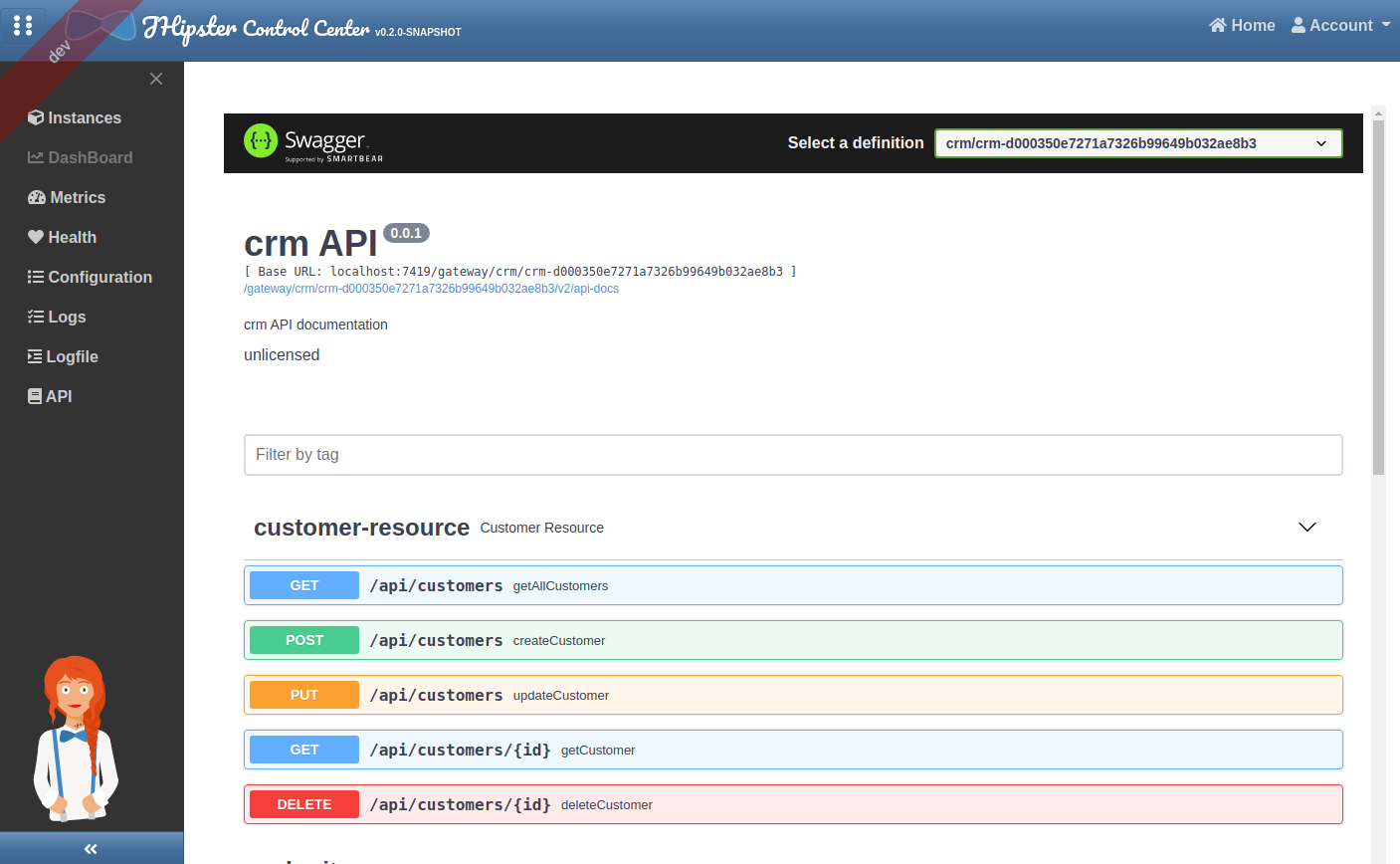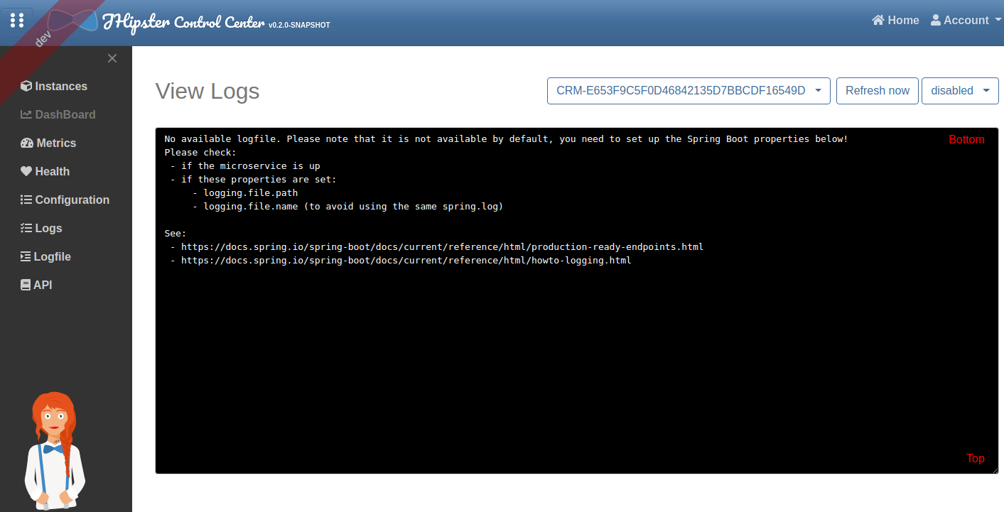 In order to access to your applications, the JHipster Control Center use a specific security mechanism depending on the profile.