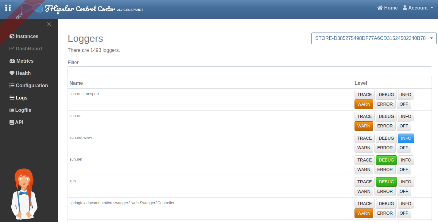 The logs page allows to manage at runtime the Logback configuration of the running application.